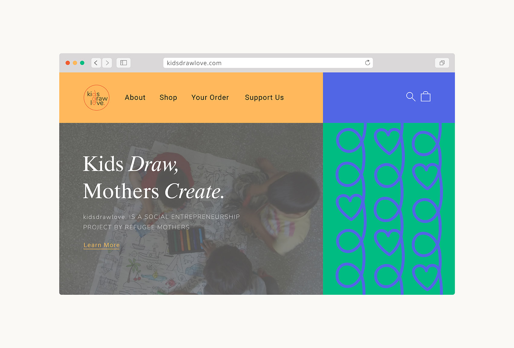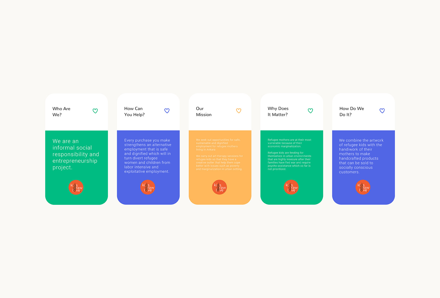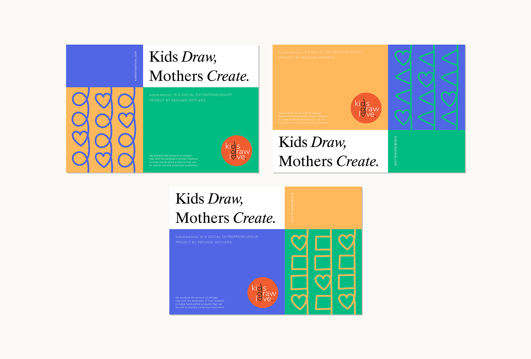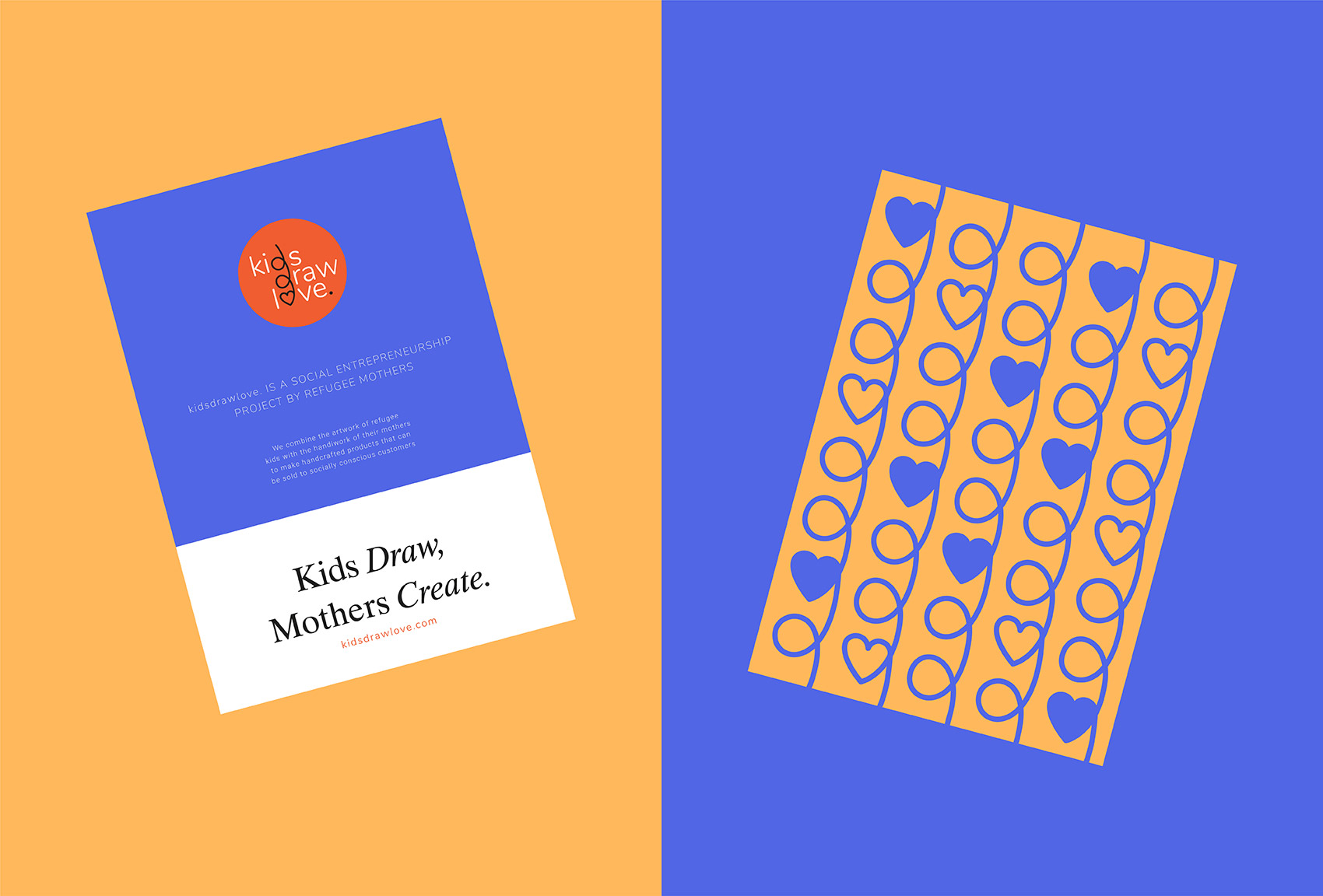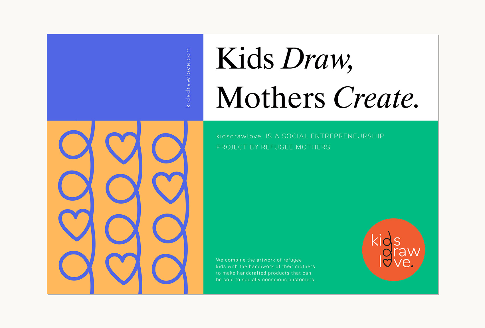 Kids Draw Love is a social entrepreneurship project by refugee mothers. Refugee kids and their mothers collaborate through the combination of the artwork of kids with the handiwork of their mothers to make handcrafted products that can be sold to socially conscious customers.