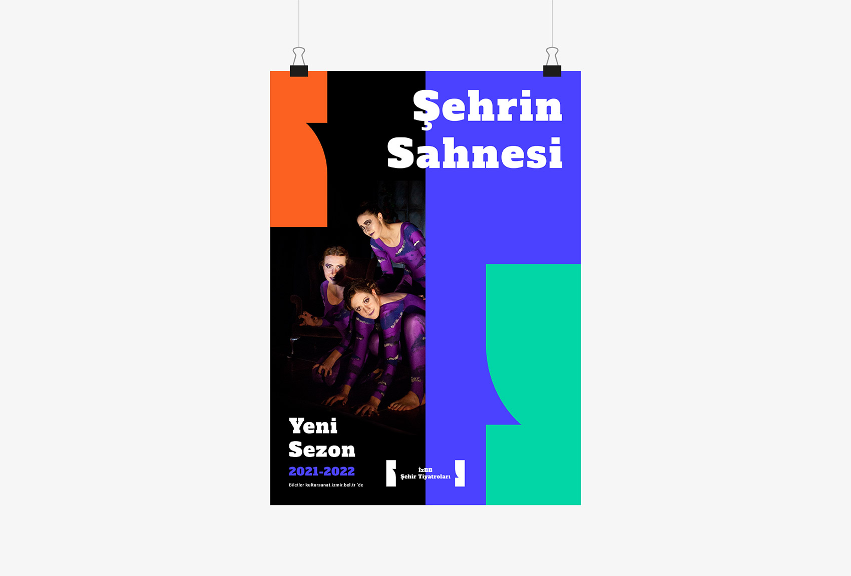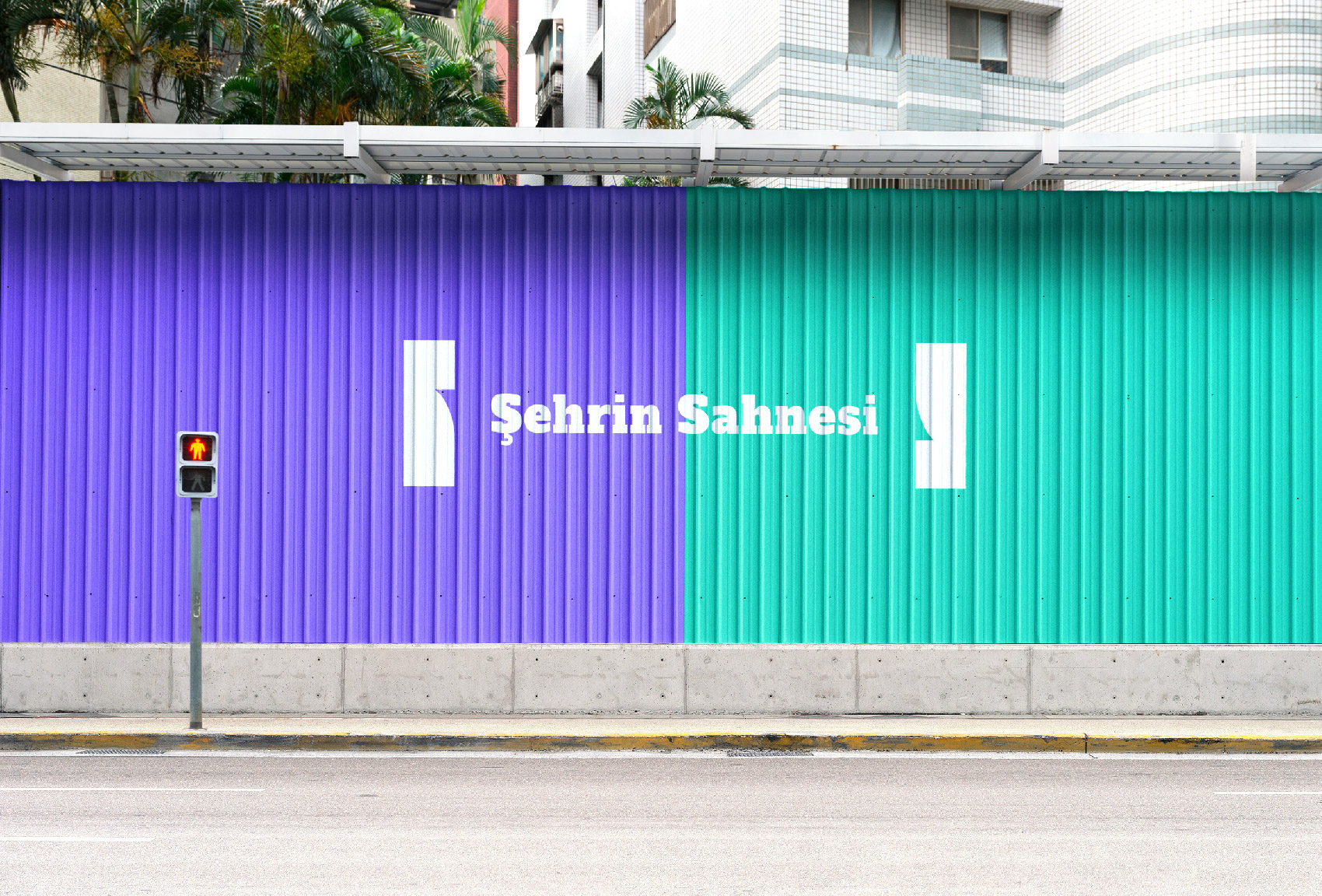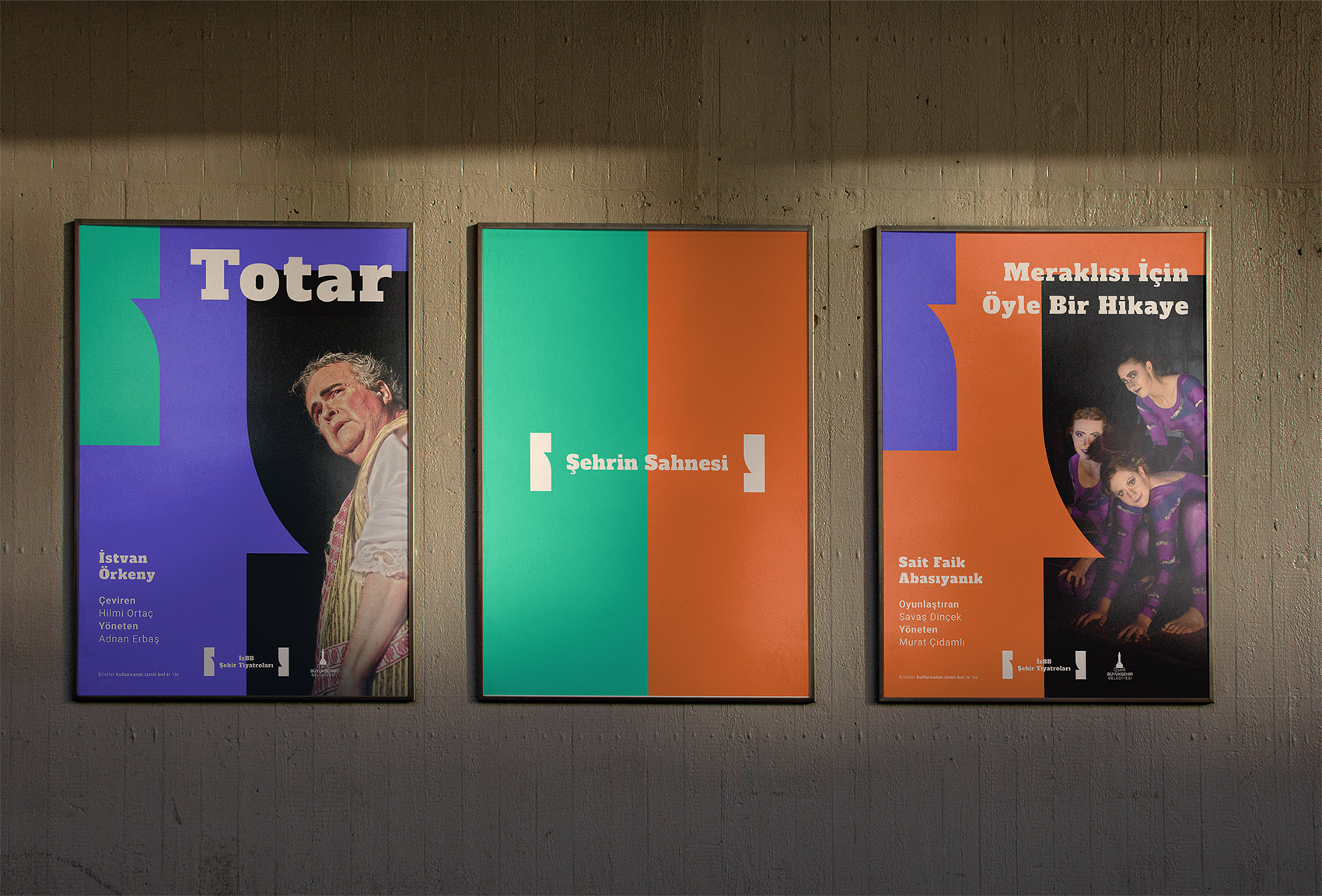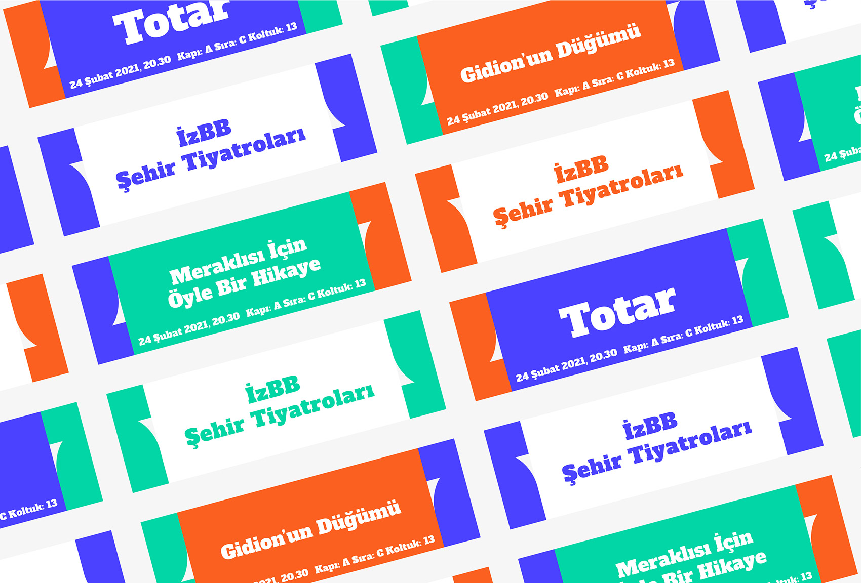 The city "İzmir" landscape is constrained of three main blocks when it reformed to its most abstract state ; sea, forest and the air. They all intersect at the horizon as if they are drawn curtains. To carry the motto " The Stage of the City" in the design, blocks split in half and vibrant colours are used to reflect the city the most simplistic way.