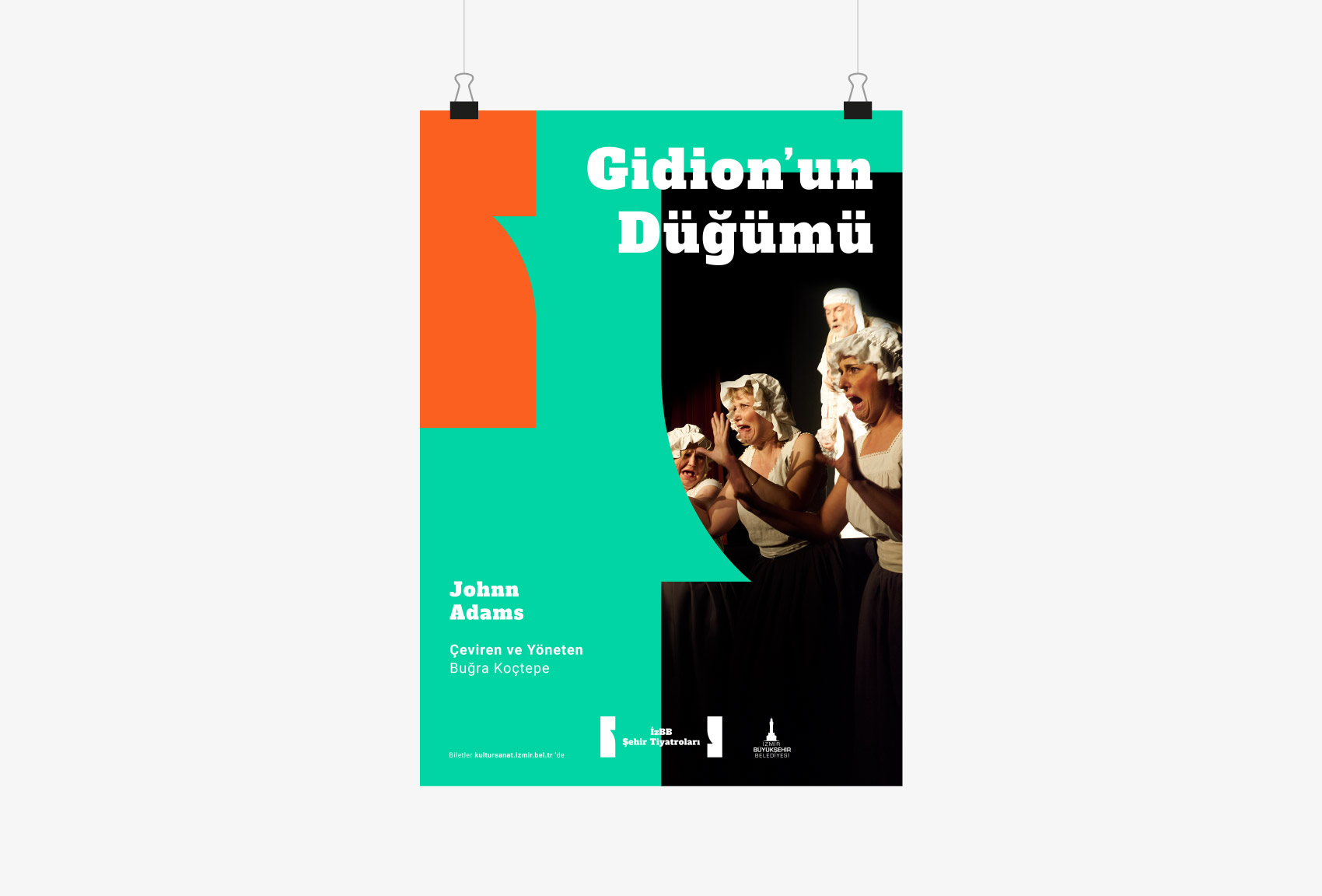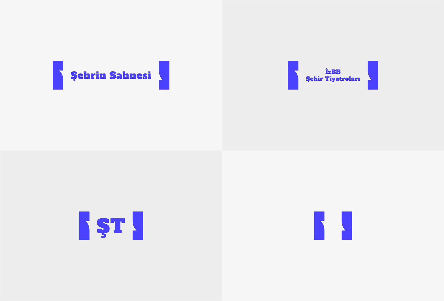 The logo consists of two blocks placed at each end which represents the front curtain. As the curtains are being pulled aside, performers get on the stage ; letter mark, wordmark and the slogan. The block-like shapes also refer to drama masks ; Thalia and Melpomene.