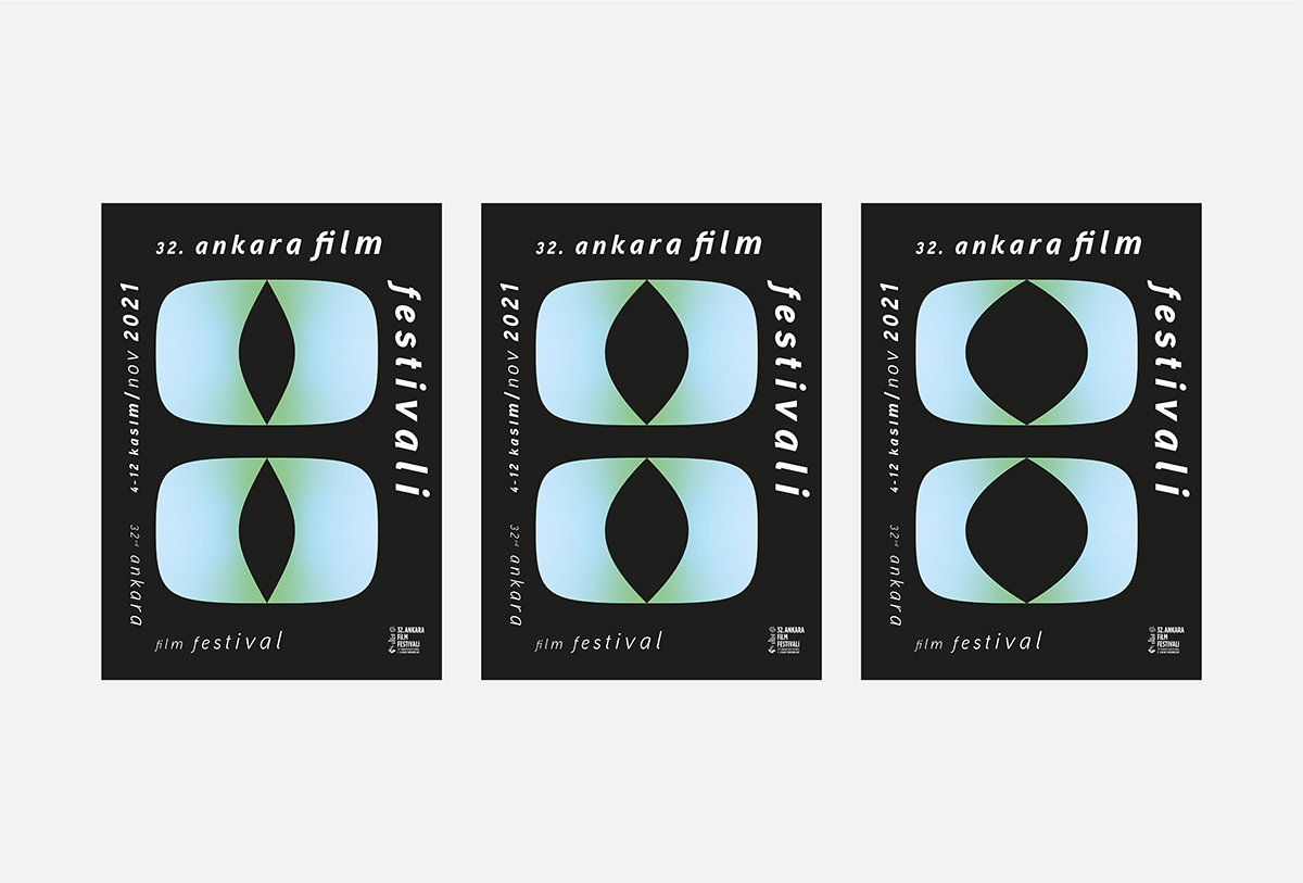 The series uses a graphic element where a cat iris and projection curtain is combined. The iris refer to the cat breed which is native to Ankara. This Ankara cat is known for having different colored iris; one is blue and the other one is green, both of which are used as the gradient in the design. As the cat watches the city Ankara, its iris grows bigger with wonder.