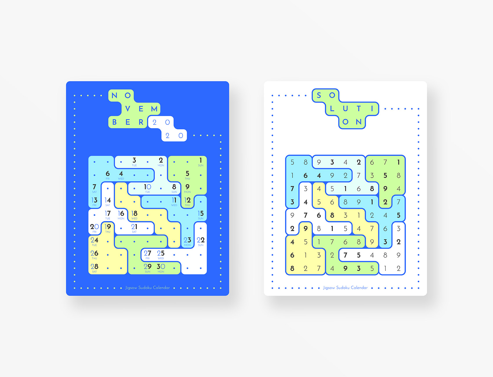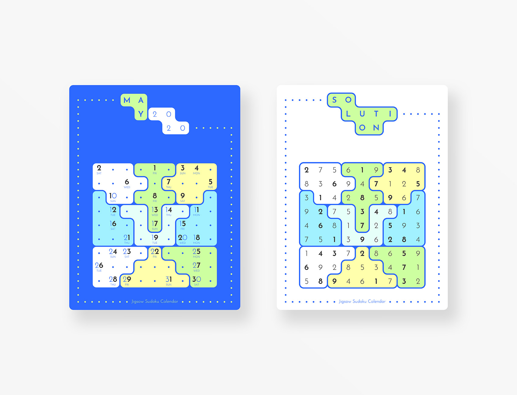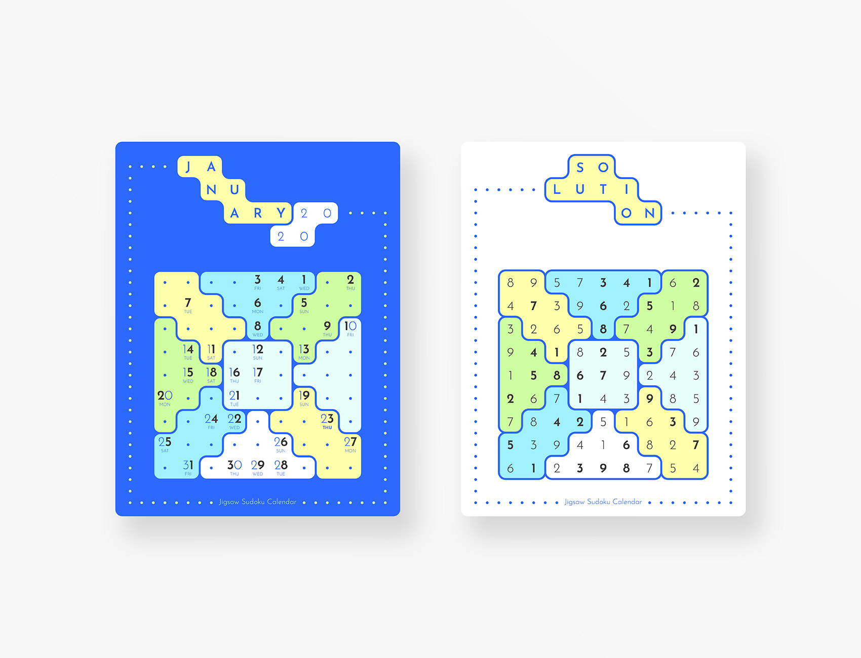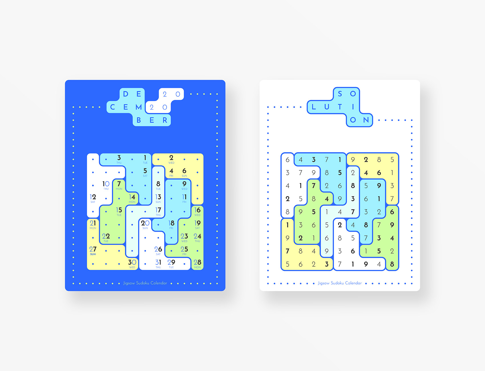 Jigsaw Sudoku Calendar 2020