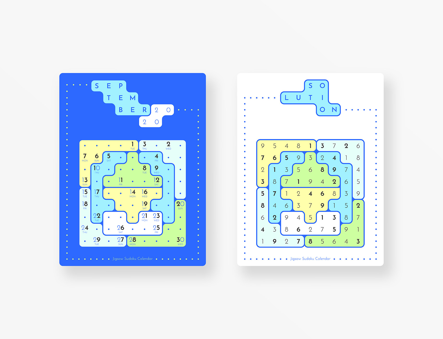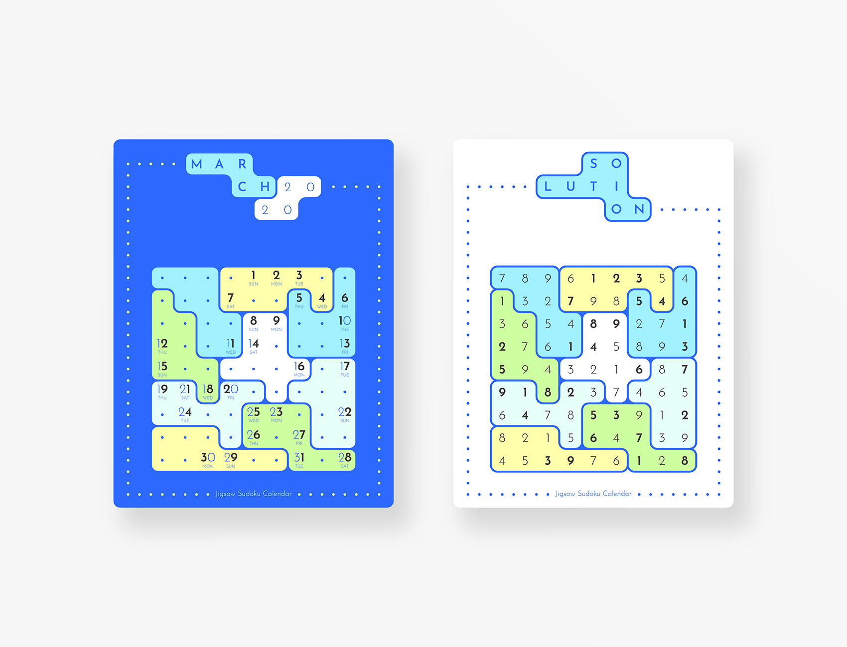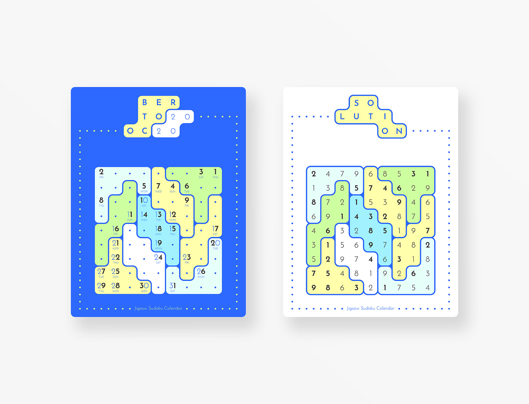 Jigsaw Sudoku Calendar 2020
