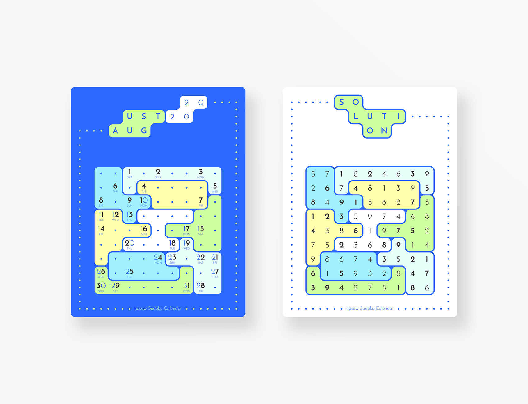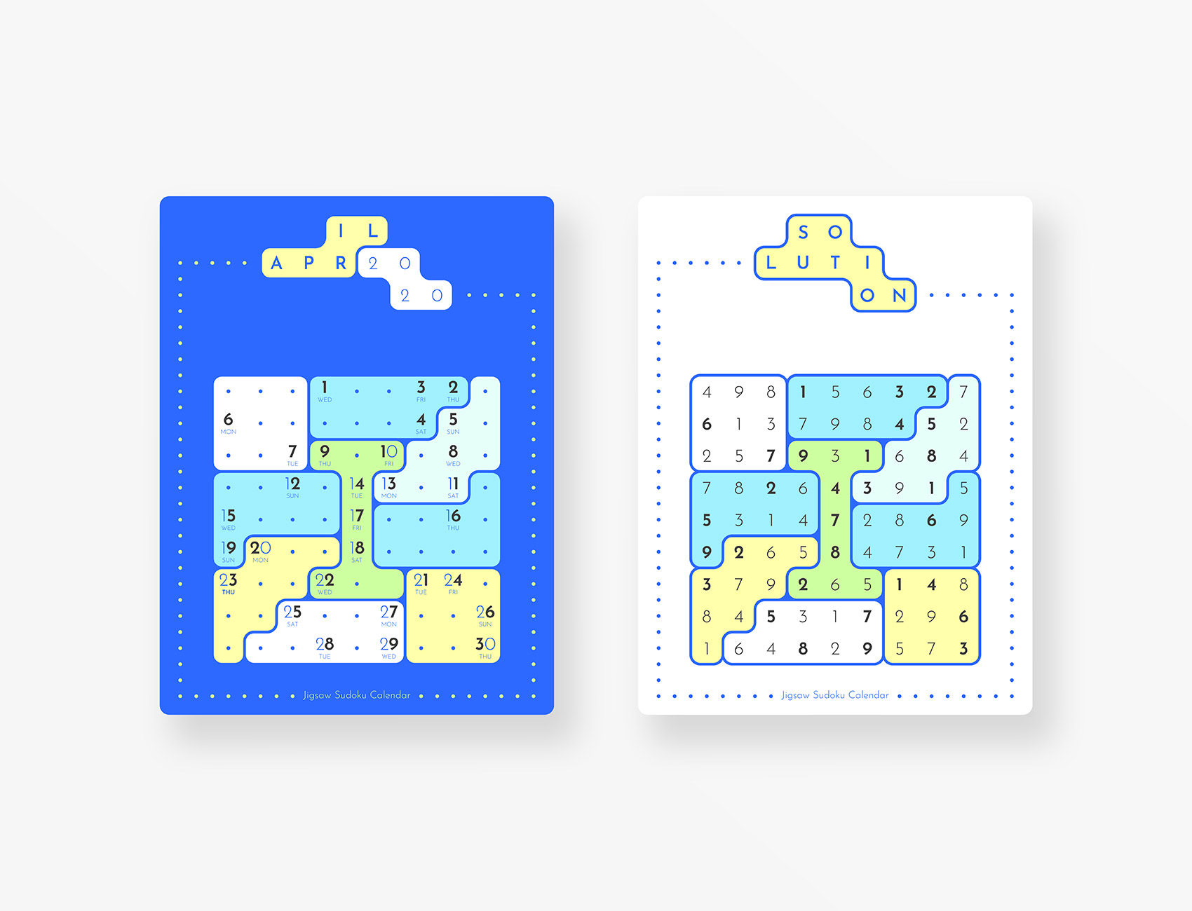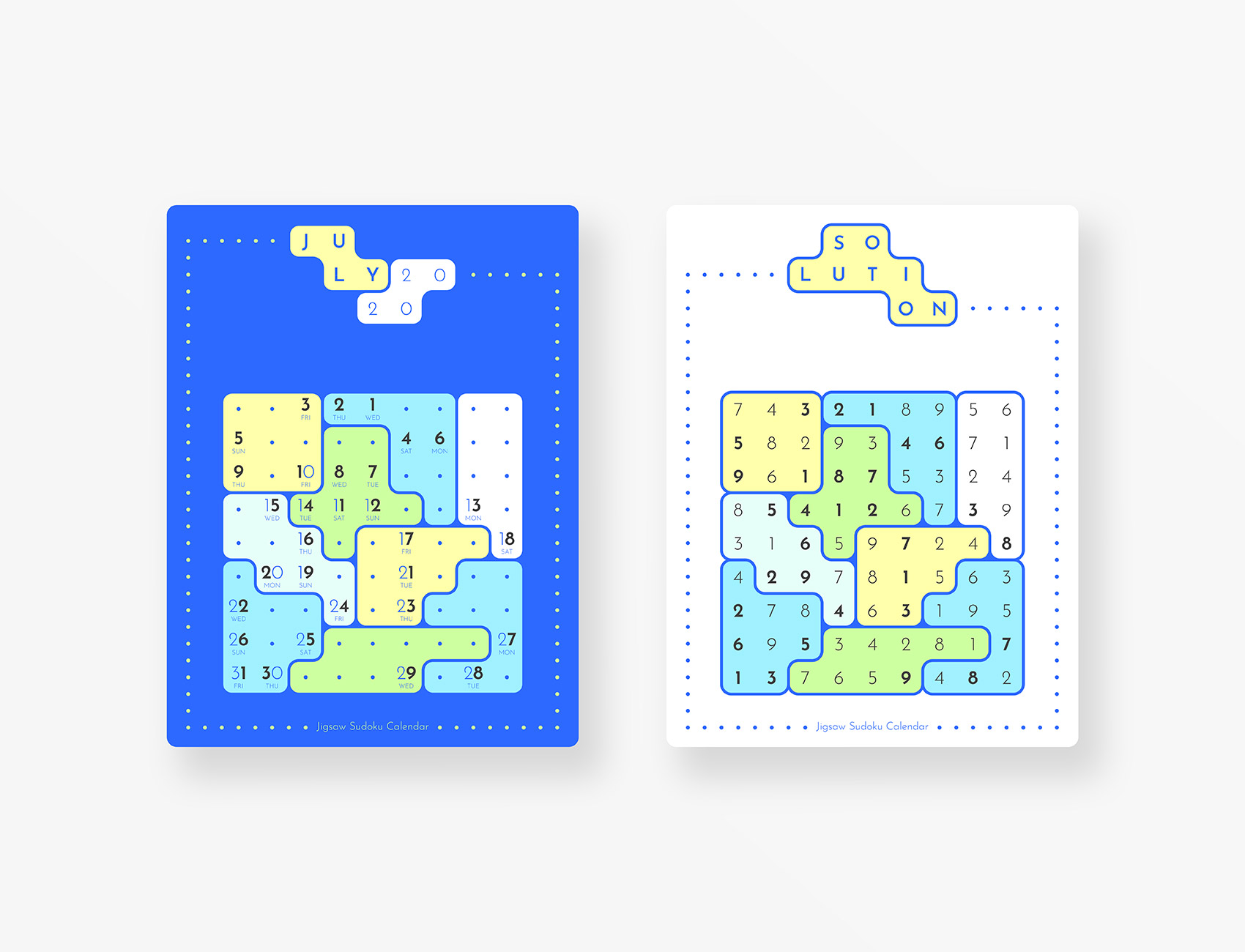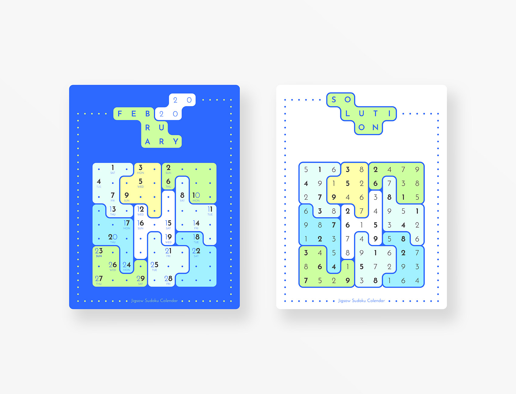 Jigsaw Sudoku Calendar 2020