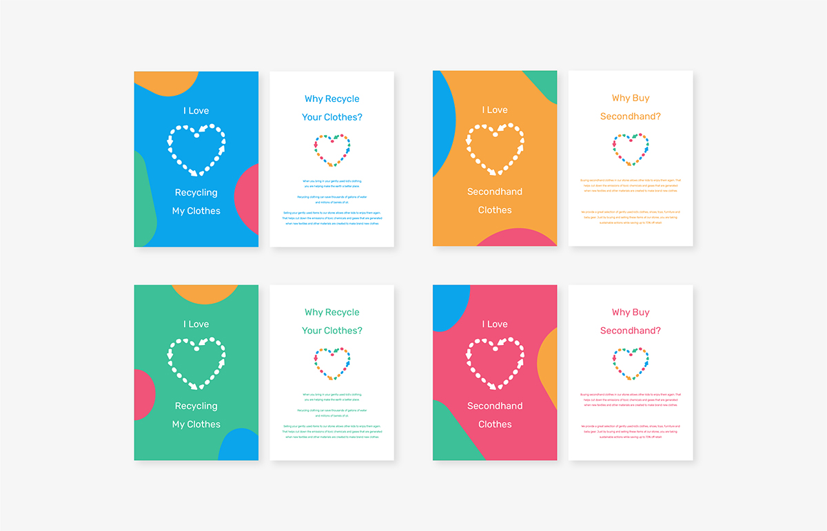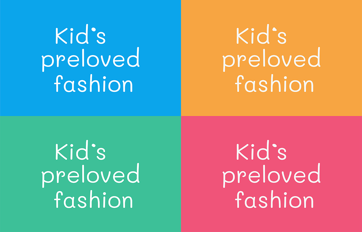 The brand vision is reflected upon its logo which is a combination of different caterpillar symbols changing in each logo placed at each end of the logotype referring to "metamorphosis" of both children and clothing. The happy caterpillar symbol projects the joy that children experience in both their growth and contribution to lessening the clothing waste.