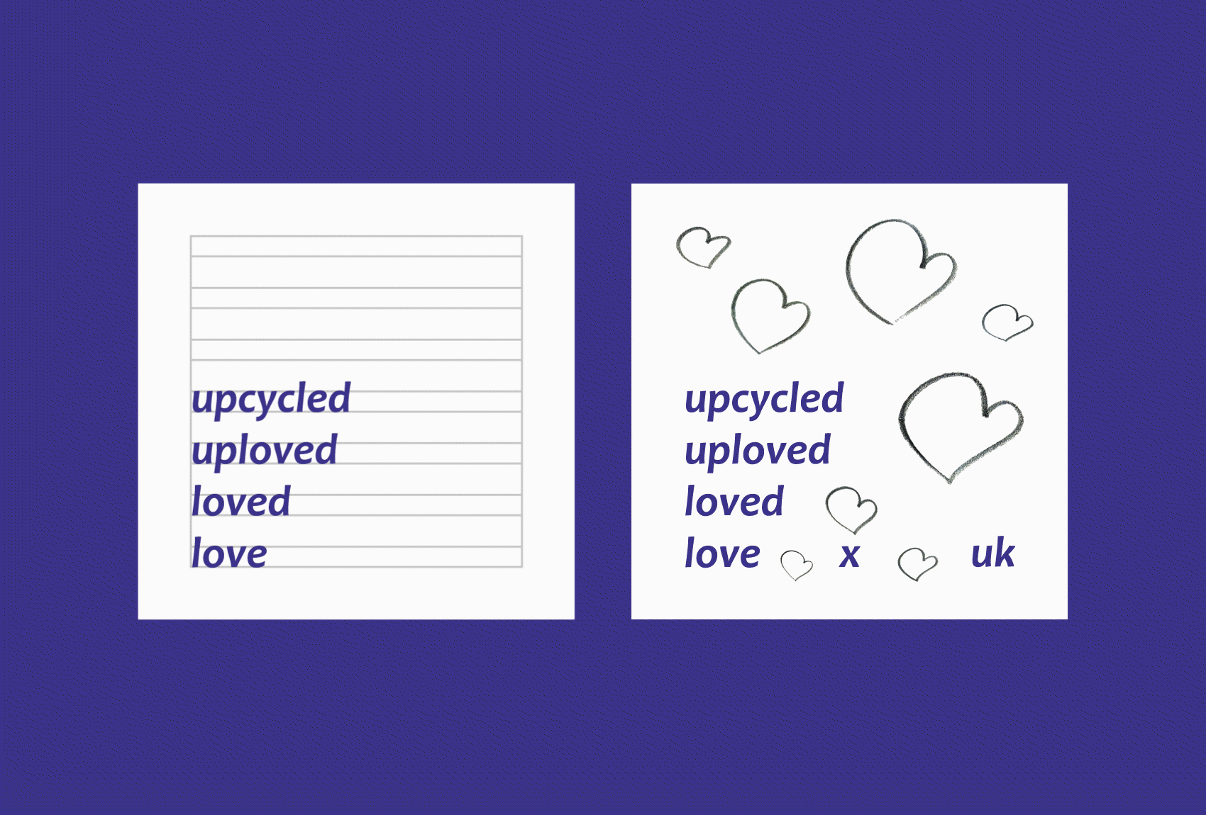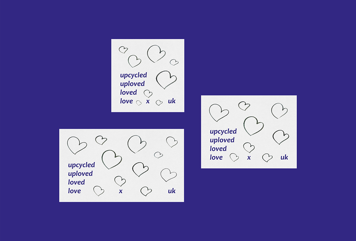 The logo also celebrates the handmade nature to the bags, using a collage of sketches of the logo's heart drawn during the creative process as its graphic elements.