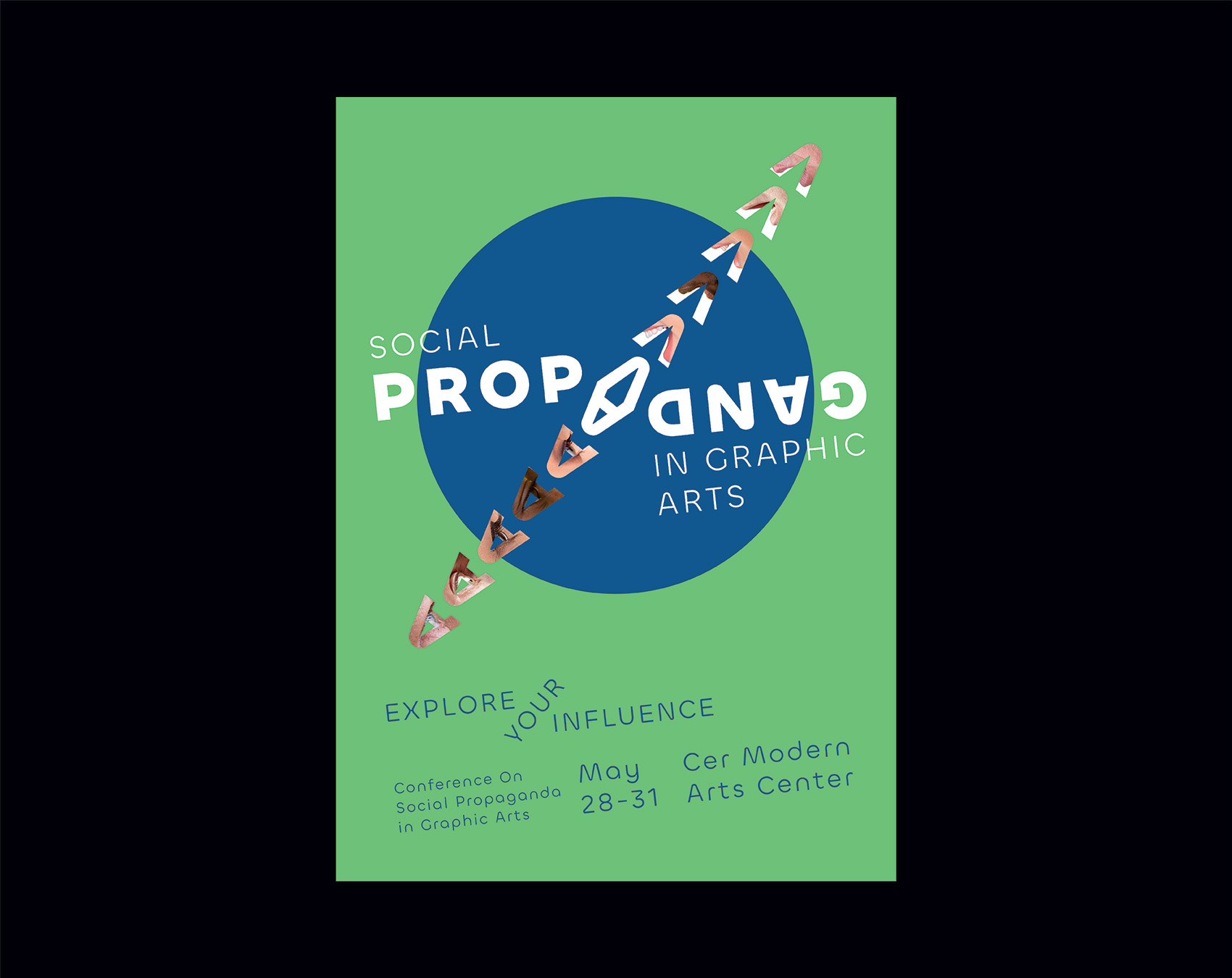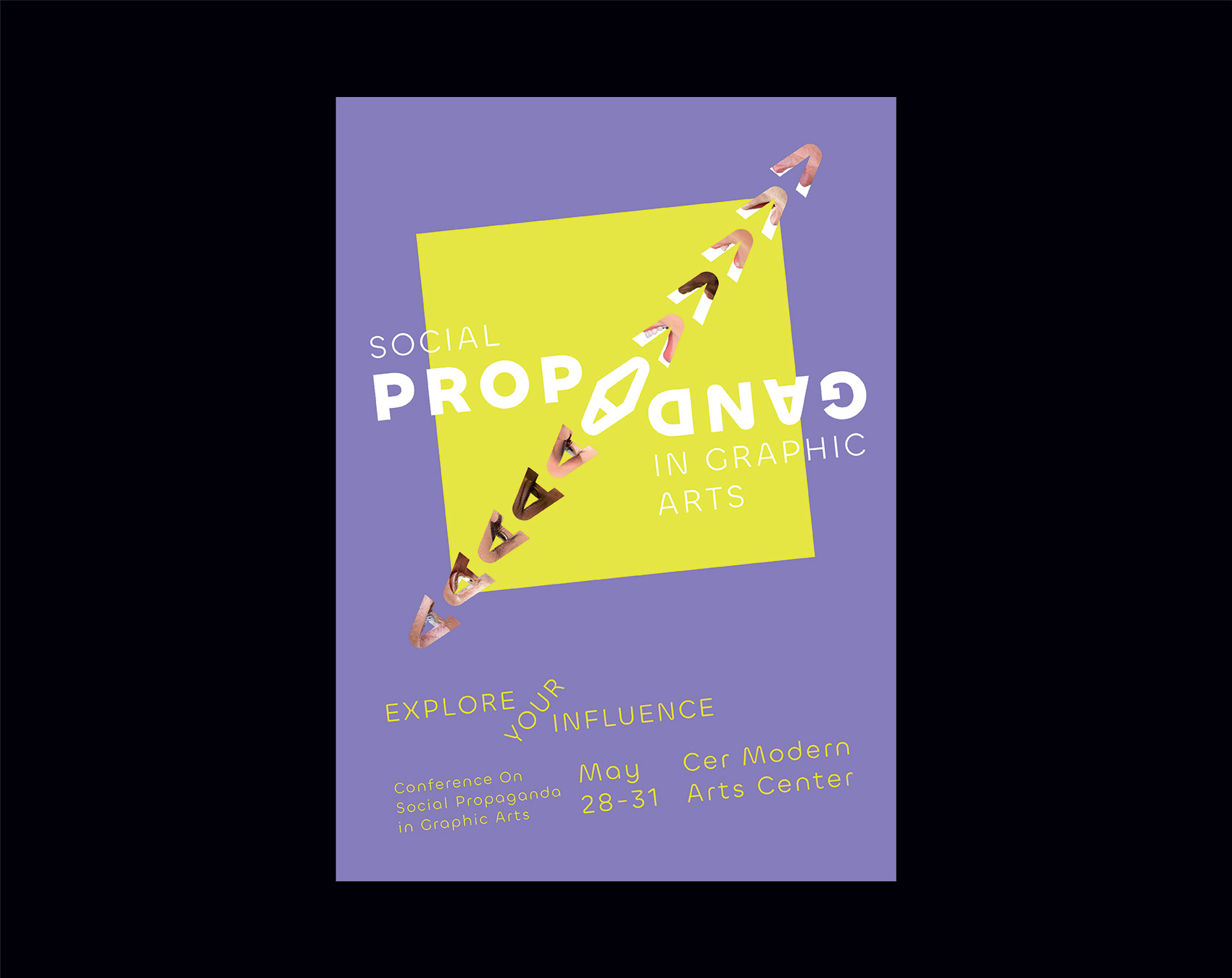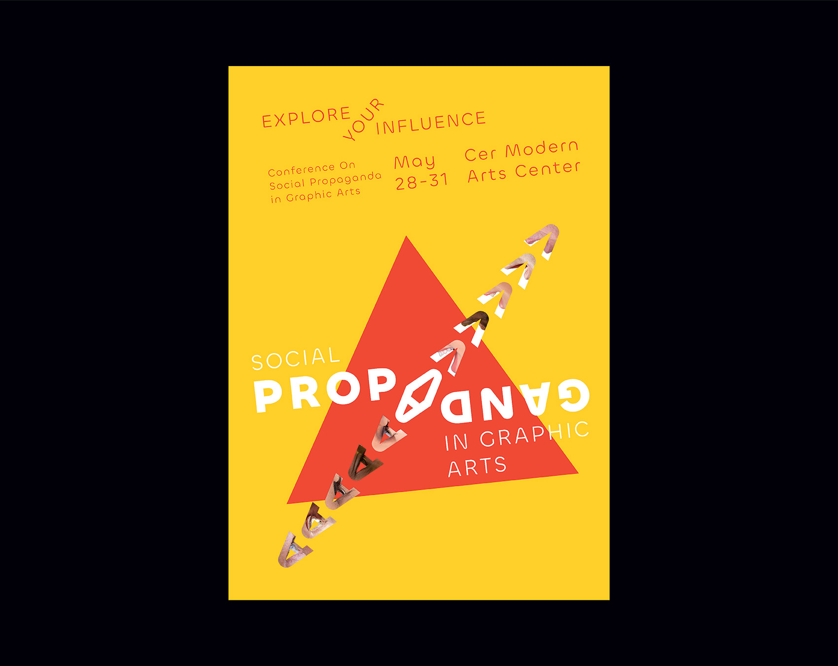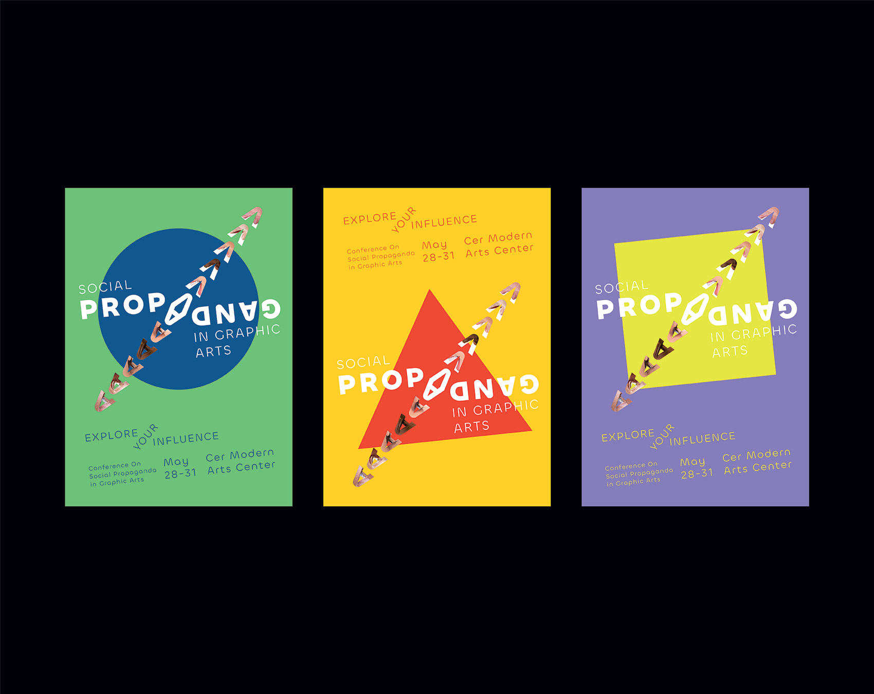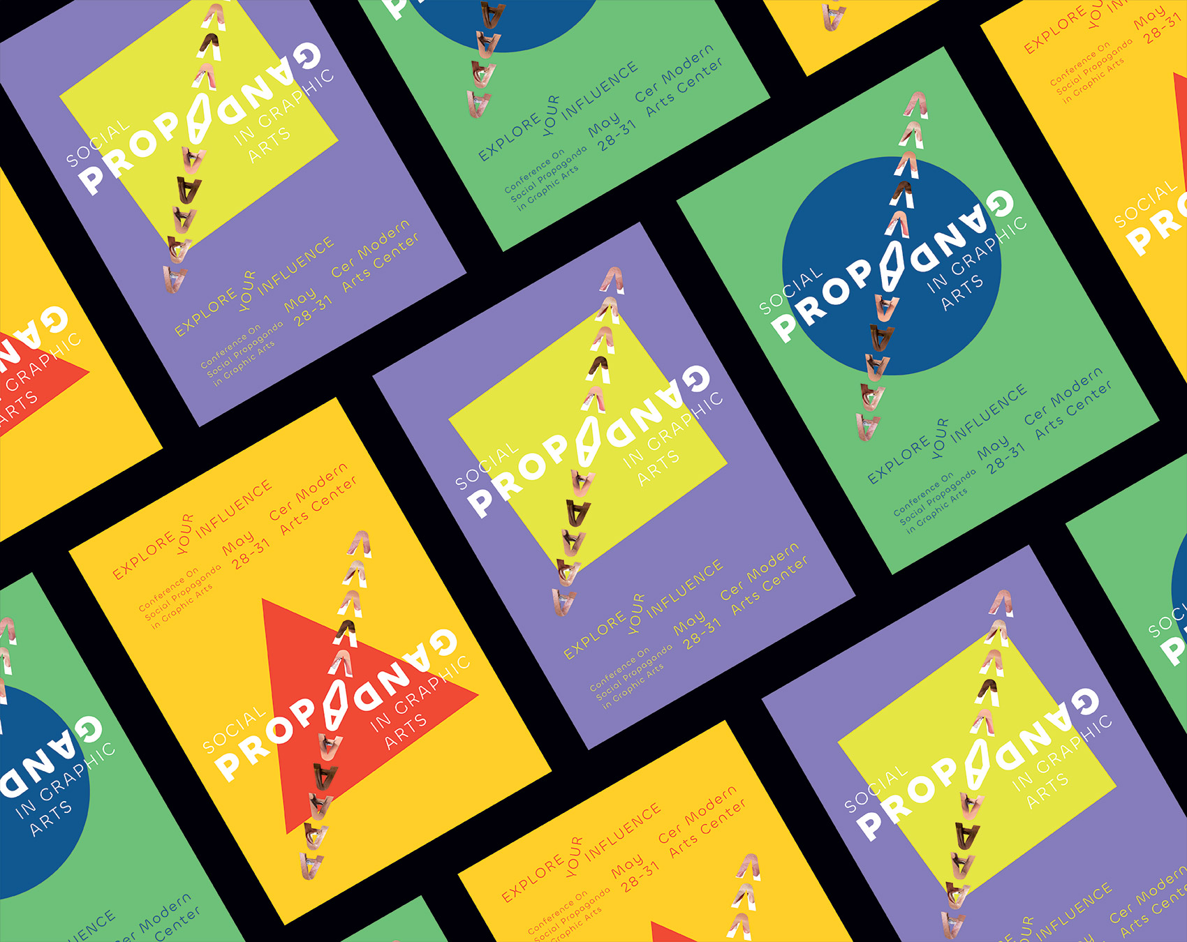 This series of posters for the event ‘Conference on Social Propaganda In Graphic Arts’ mirrors the act of propagating and being propagated. The word ‘propaganda itself is visually and verbally propagated. This is achieved by two ways; the one is the manipulation of words, meaning being propagated. The other one is that graphics derived from capital 'A' representing the eye and mouth and the images fit in those graphics manipulates the word which refers to the visual and verbal propagation.